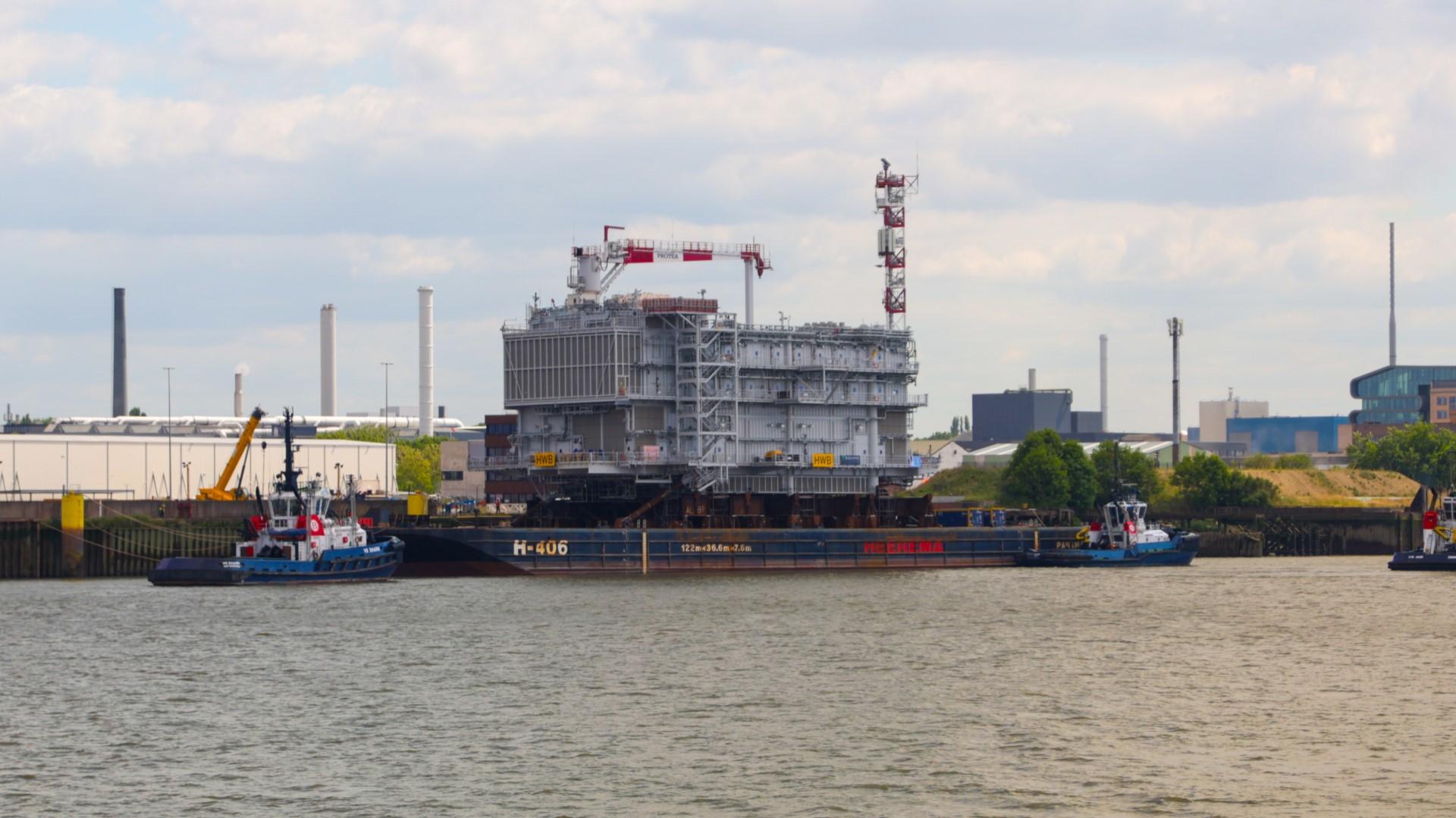 The transport on a pontoon then went via the Scheldt and the Western Scheldt towards the North Sea.