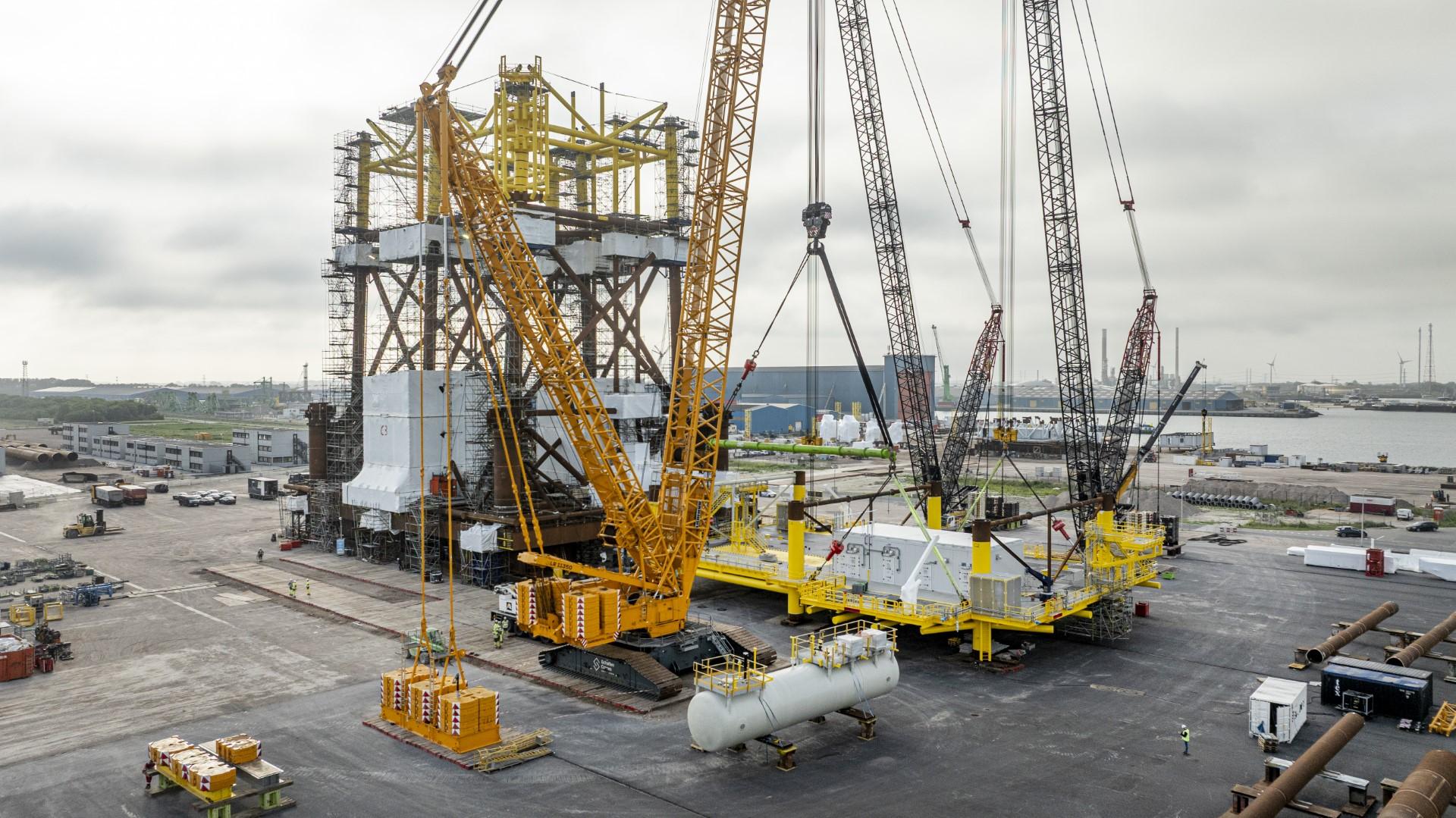 Een bijzonder element is het kabeldek van 842 ton, dat in twee delen werd gebouwd op onze werf in Hoboken. In Vlissingen zijn deze delen samengevoegd en volledig uitgerust, waarna het dek zorgvuldig op de jacket is geplaatst.